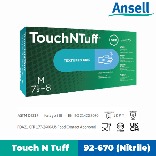 Nama / Seri Produk Ansell TouchNTuff® 92-670 (disposable nitrile gloves)
